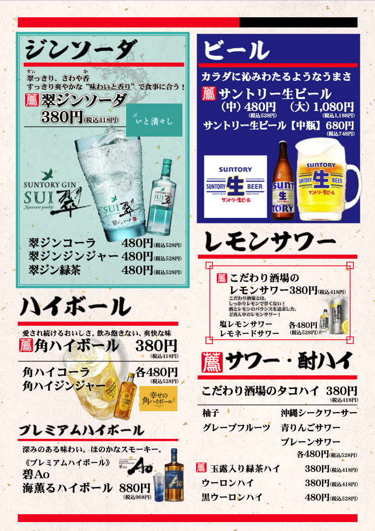 土日祝や繁忙日は、飲み放題のみのご注文はお受けできません。