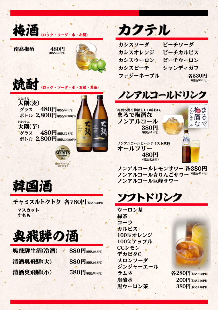 飲み放題メニュー
